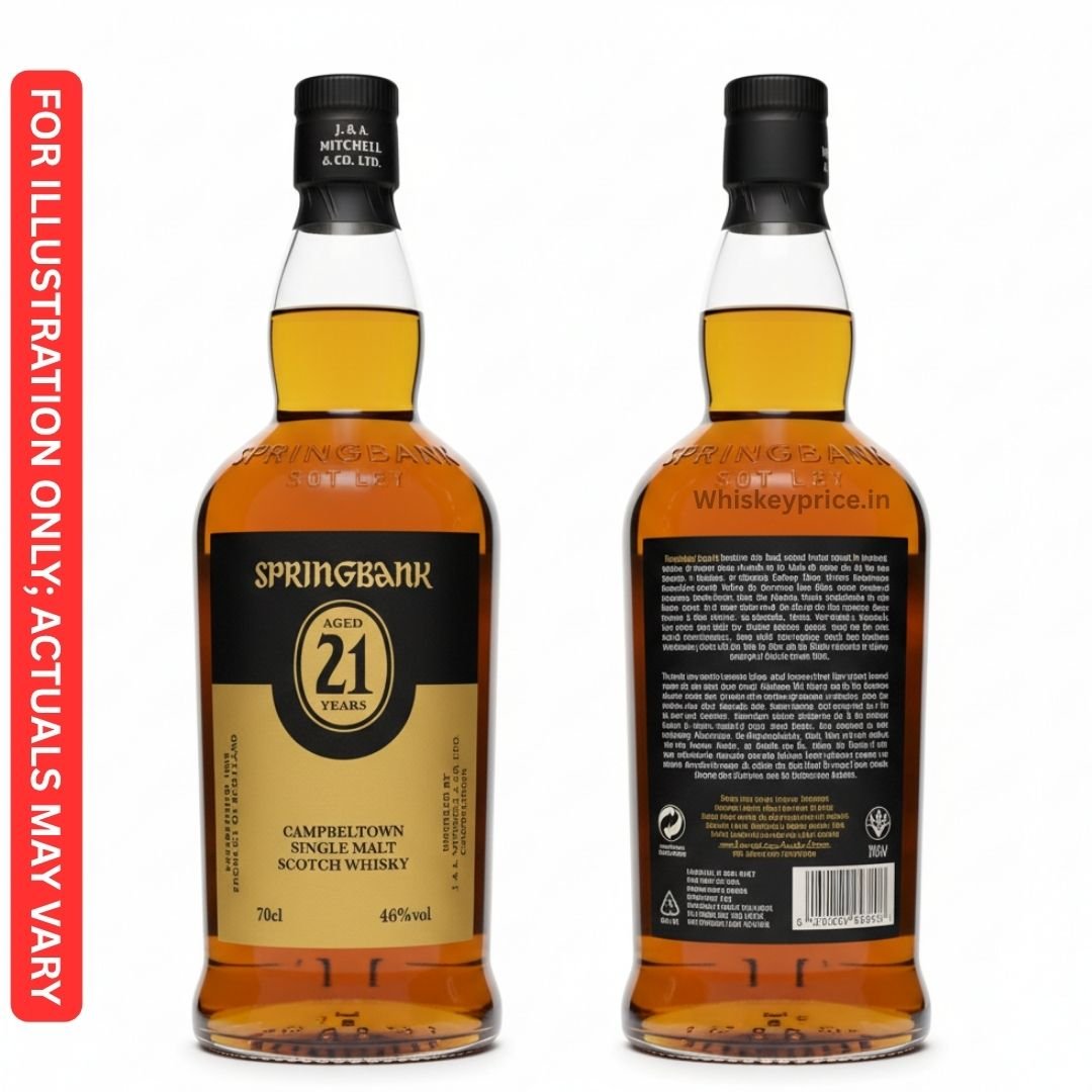 Springbank 21 Year Old features an amber-golden color and offers a smooth, creamy mouthfeel with a rich and elegant complexity. Its profile bridges fruitiness, peat, and oak, showcasing notes from its unique cask maturation process including port, bourbon, rum, and sherry influences.