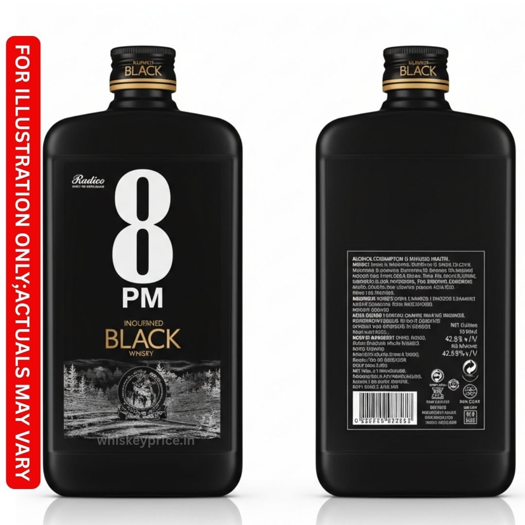 8PM Premium Black is an Indian Blended Whisky (IMFL) with an ABV of 42.8%. It is crafted by blending premium Indian grain spirits with Scotch malts, and the grain spirit is distilled at the world’s largest continuous distillation plant at the Rampur Distillery. The whisky is marketed for its smooth character and offers a premium experience at an accessible price point.
