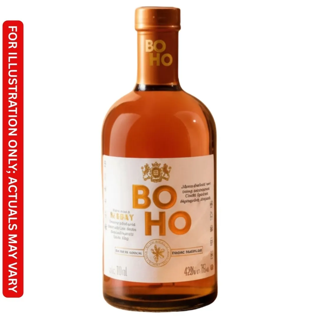 Boho Whisky is a premium blended whisky that combines the smoothness of Indian grain spirits, the richness of Indian malts, and the depth of imported Scotch malts. With an ABV of 42.8%, it is designed to offer a smooth, balanced drinking experience. The whisky is packaged in a minimalistic yet premium design, sometimes featuring eco-friendly elements like biodegradable jute bags.