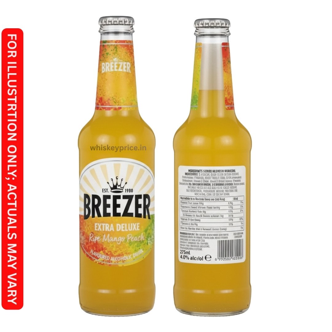 Bacardi Breezer Ripe Mango Peach is a tropical, rum-based RTD alcopop with 4% ABV in India. It blends the sweetness of Indian mangoes with juicy peach flavors over a smooth rum base. Available in 275 ml and 330 ml glass bottles.