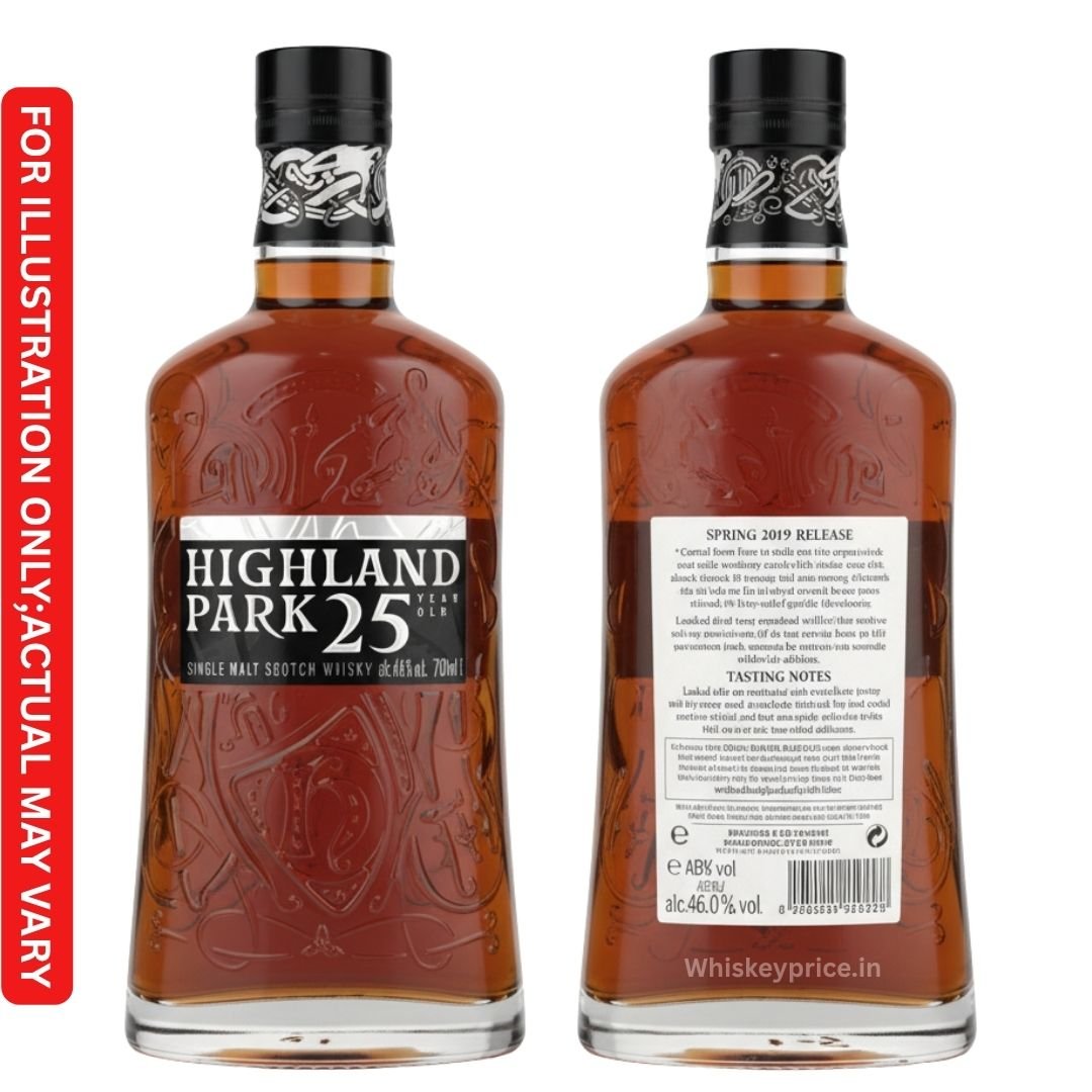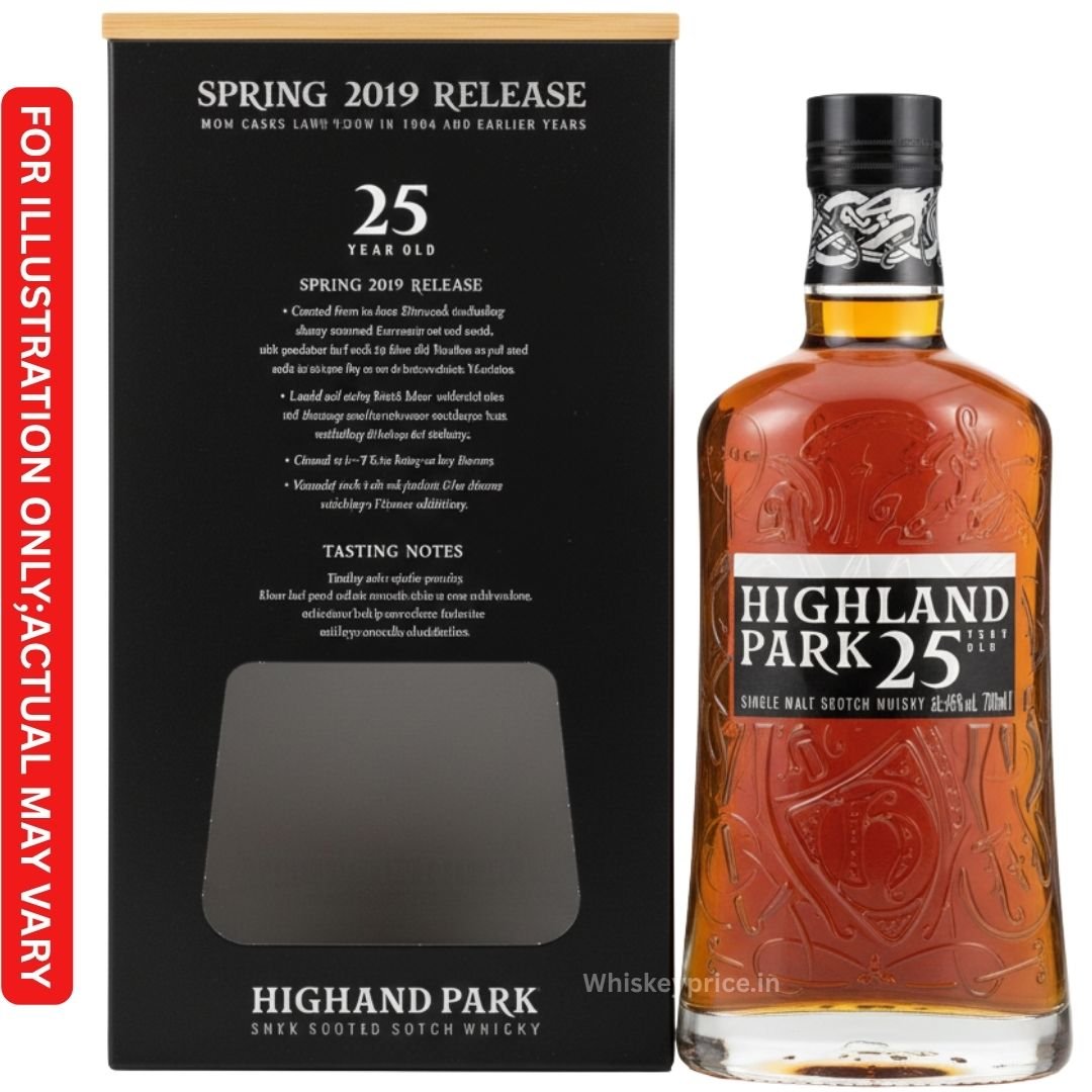 Highland Park, established in 1798 in Orkney Islands, Scotland, is known for balanced whisky combining sherry sweetness and gentle peat smoke. The 25 Years Old expression is a highly valued premium release.