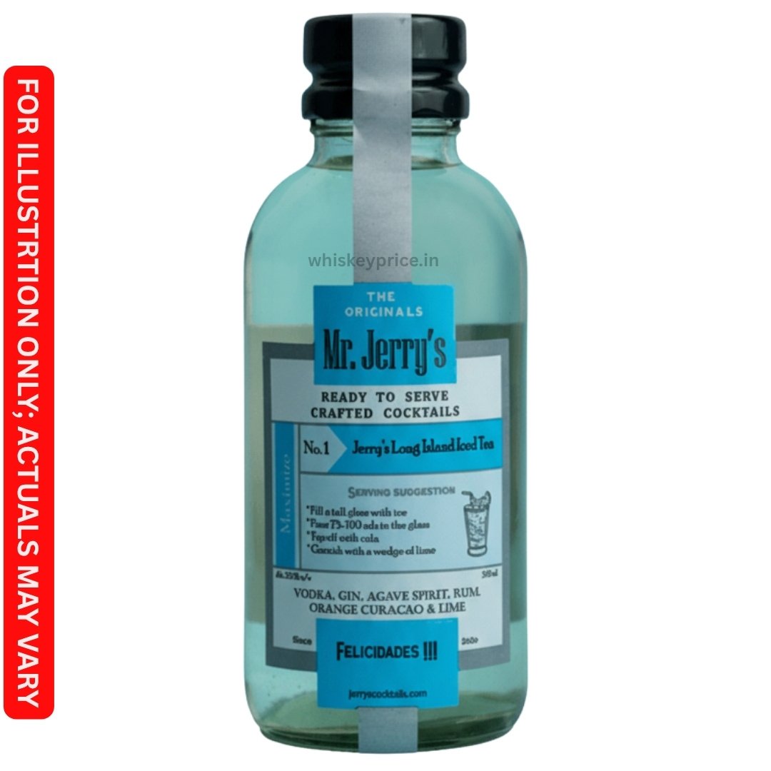 Mr. Jerry’s LIIT is a 10–12% ABV ready-to-serve cocktail available in 500 ml multi-serve and 100 ml single-serve bottles. It contains a potent mix of Gin, Vodka, Rum, Indian Agave spirit (Tequila alternative), and homemade Orange Curacao/Triple Sec, balanced with lime. The bottle does not include cola, allowing users to top it as desired.