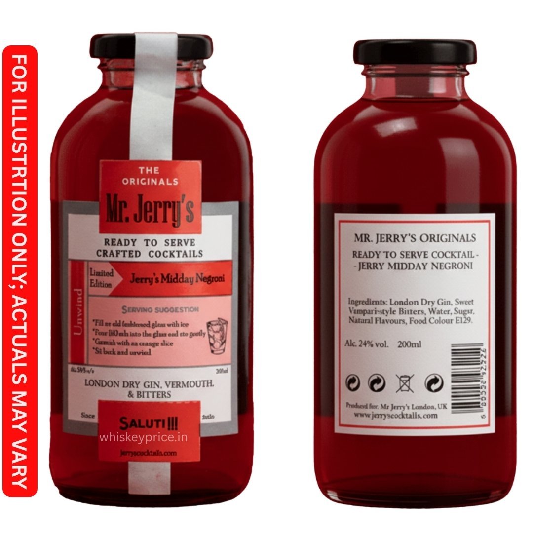 Mr. Jerry’s Midday Negroni is part of Blue Ocean Beverages’ RTS cocktail range, produced in Goa. It is a lighter, pre-mixed version of the classic Negroni, designed for afternoon or brunch drinking with a more sessionable alcohol level than the traditional Italian cocktail.