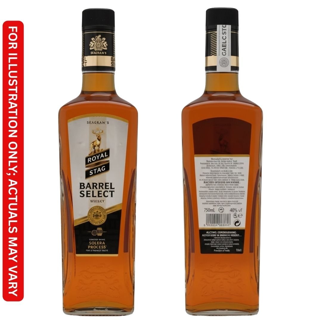 Royal Stag Barrel Select is a premium blended Indian whisky, a flagship brand of Pernod Ricard India Ltd., marketed under the Seagram’s name. Known for its rich and smooth flavor, this whisky is made from a blend of Indian grain spirits and imported Scotch malts. Royal Stag Barrel Select was introduced in India in December 2011 and was the first whisky launched in India without artificial flavorings.