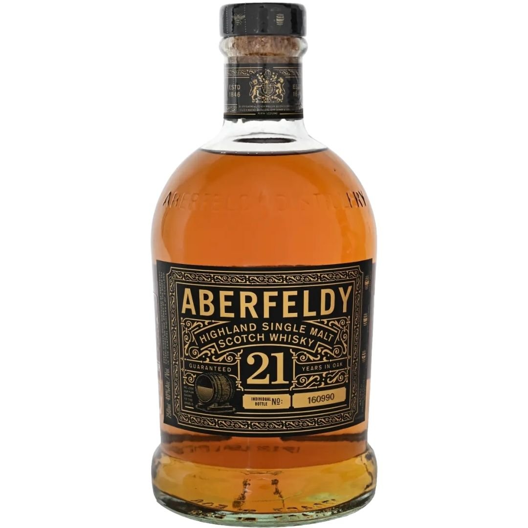 Aberfeldy 21 Year Old is a single malt Scotch whisky matured for at least 21 years in a combination of oak casks. Extended maturation allows integration of oak‑derived spice and depth of fruit character while maintaining the distillery’s signature smooth richness. This expression is typically bottled at 40% ABV and reflects the Highland style of balanced sweetness and oak wood tones.
